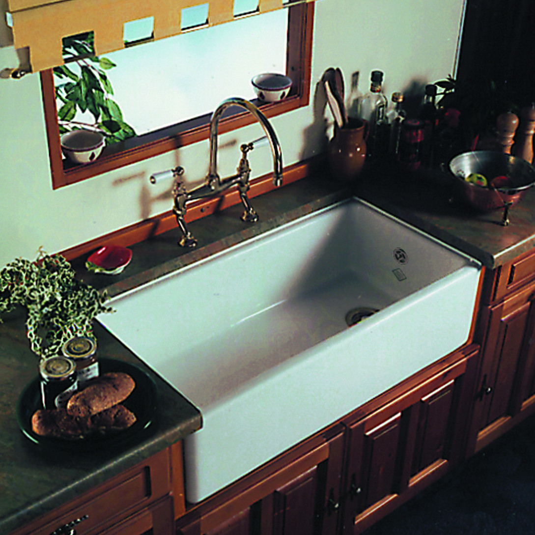 Porslinet i denna diskho kallas fireclay och är helt homogent. Normalt sanitetsporslin har annars två tunnare ytor med luft emellan. Den homogena konstruktionen gör att diskhon är mycket stabil och ganska tung. Var därför noggrann med att ha en stabil konstruktion som bär upp själva diskhon.