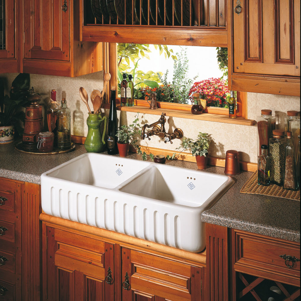 Ribchester 800 dubbel porslinsho med bräddavlopp tillverkad av en av de riktiga engelska kvalitetstillverkarna Shaws of Darwen. Storlek ca 795x465x234 mm och vikten ca 70 kg. Till denna passar Shaws extra stora bottenstrainer med porslinsinlägg.